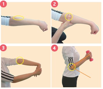 2. 팔꿈치 근육 누르고 손목 돌리기