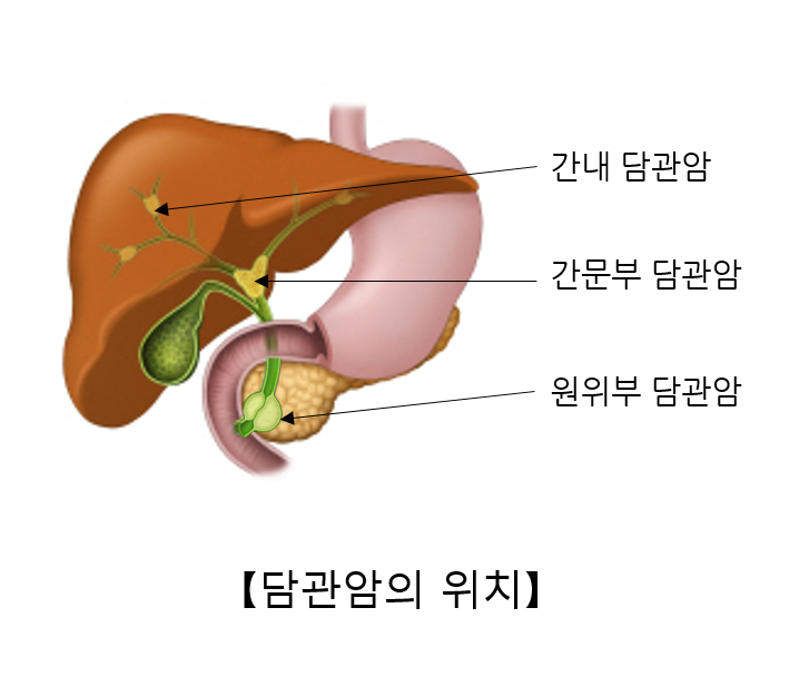 이러한 담관에서 발생한 암은 해부학적 위치에 따라 간내 담관암(20~25%), 간문부 담관암(50~60%), 원위부 담관암(20~25%)으로 구분할 수 있습니다. 담관세포에 발생한 선암종이 담관암의 거의 대부분을 차지합니다.
