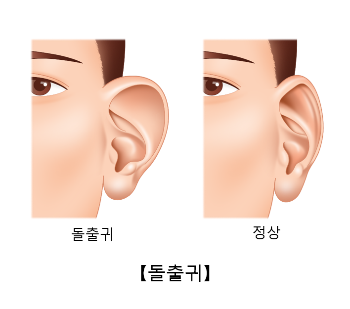 돌출귀는 일반적으로 귓바퀴가 부채처럼 활짝 펴지고, 귀와 머리 부분이 형성하는 각이 정상보다 크고, 귓바퀴와 머리 사이의 거리가 유난히 먼 상태를 의미합니다.