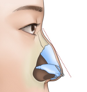 코를 전체적으로 높이는 경우에는 자가조직(귀 연골이나 갈비뼈의 연골, 연부조직)이나 보형물(실리콘), 또는 동종진피를 삽입하며 코끝에는 대개 본인의 귀 연골이나 비중격 연골이 많이 사용됩니다. 자가 연골의 경우 기능적으로나 미용적으로 영향을 받지 않으므로 염려할 필요가 없습니다.