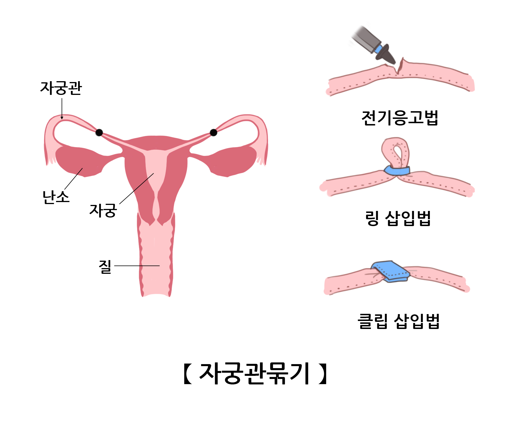 여성이 임신을 할 수 없게 하기 위해 여성의 난관을 막는 것으로서, 매우 효과적인 피임 방법이며 99% 이상의 효과가 있습니다. 복강경을 통해 많이 행해지며, 클립이나 링으로 난관을 묶거나 절개하여 폐쇄하여 수정란이 자궁에 착상하지 못하도록 하는 방법입니다. 수술을 받으면 곧바로 피임이 되지만, 테스트를 통해 난관이 완벽히 폐쇄되었음을 확인할 때까지는 다른 형태의 피임을 사용해야 합니다. 난관피임 후 복원이 가능하지만 복원 후 임신율이 50% 가량 감소하게 되고, 임신을 하더라도 자궁외 임신의 위험이 높아집니다. 그러므로 난관피임술을 결정하기 전에는 향후 임신 계획에 대해 충분히 고려한 후 수술을 결정하도록 합니다.