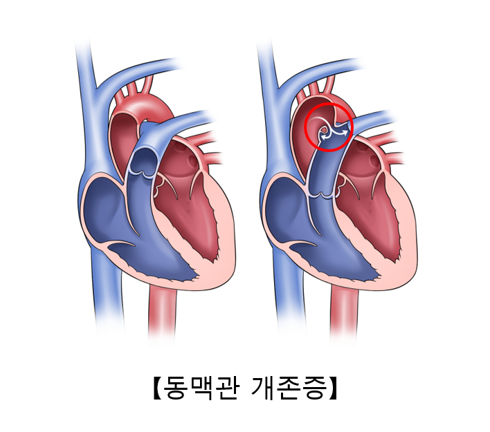 동맥관 개존증은 출생 전에는 반드시 열려 있어야 하고, 출생 직후에는 닫혀야 하는 대동맥과 폐동맥 사이의 관이 출생 후에도 닫히지 않고 열려 있는 질환을 의미합니다.