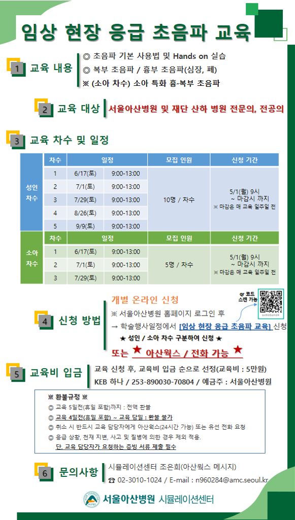 * 환불 시 필요 서류 : n960284@amc.seoul.kr 메일 또는 아산웍스 메세지(수신자: 시뮬레이션센터 조은희)