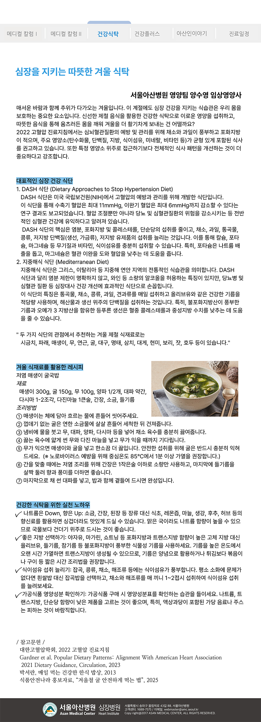[아산심장소식지 2025년 겨울호] 건강식탁