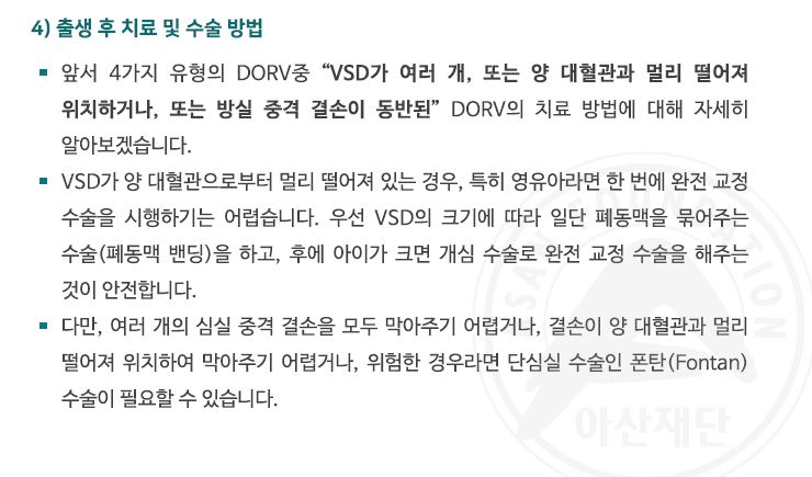 DORV (양 대혈관 우심실 기시) - 출생 후 치료 및 수술 방법
