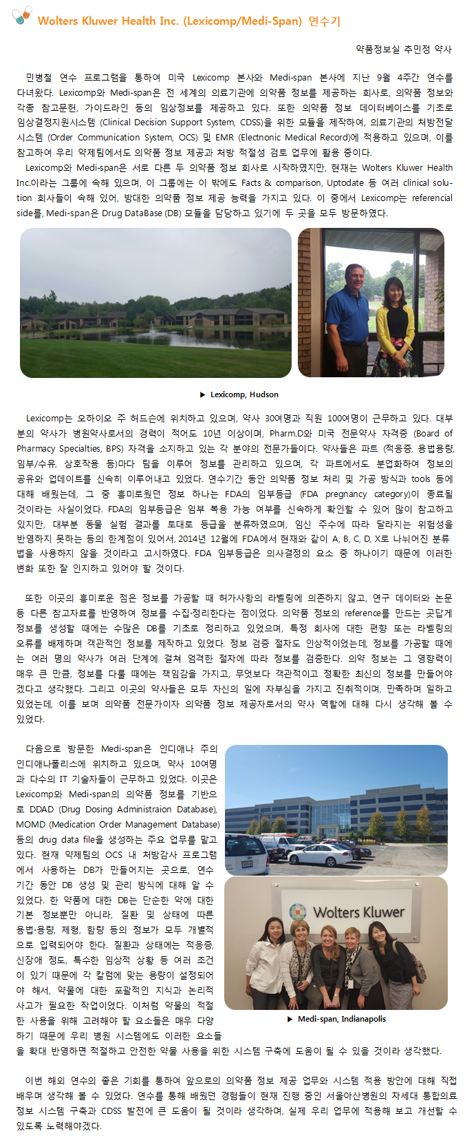 Wolters Kluwer Health Inc. (Lexicomp/Medi-Span) 연수기