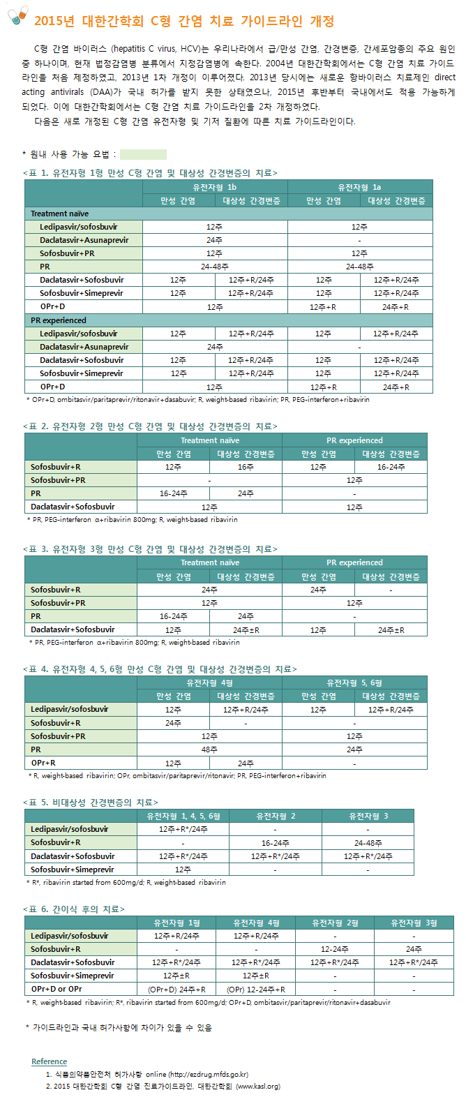 2015년 대한간학회 C형 간염 치료 가이드라인 개정