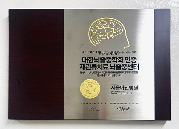 뇌졸중 환자의 조기 재활, 응급 시술 및 혈전용해제 사용 현황, 약물 처방 현황, 치료 지침을 비롯하여 뇌졸중 전문치료실의 입실 환자수, 모니터링 장비, 의사 및 간호사 교육 정도, 일반인 대상 교육 정도, 타과 협진 체계 등 전반적인 시스템 평가에서 인증을 받았습니다.