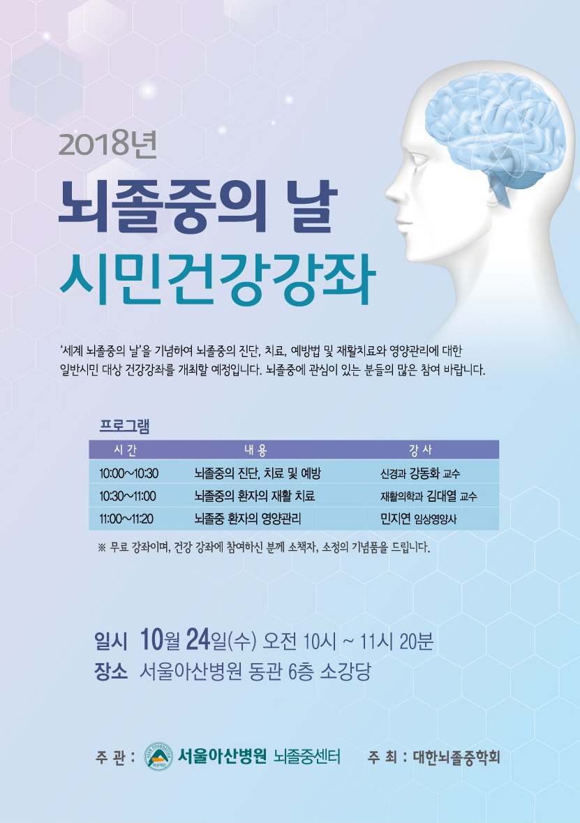 뇌졸중의 날 시민 건강강좌 : 10월 24일 수요일 오전